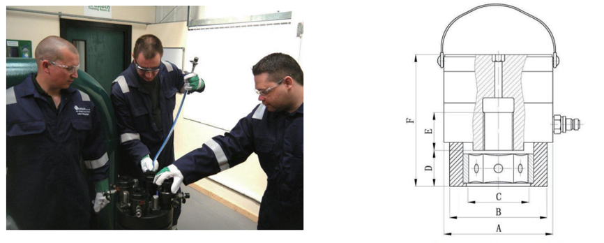 • 彈簧自動復位,活塞過行程保護,當活塞達到最大行程時,將可見一根紅色警示線,拉伸器內部的一個簡單的機械失效裝置將避免液壓油濺傷作業人員;