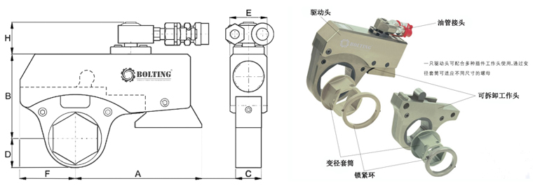 產(chǎn)品的選取依據(jù)螺栓鎖緊和拆松扭矩而定,扭矩值會(huì)因螺栓直徑和強(qiáng)度等級(jí)不同而有所變化。